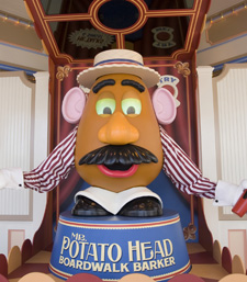 Since this was a special preview, the line was very short, much shorter than what I would expect when the ride opens up to everyone. There were 4, maybe 5 cast members at the entrance making sure everyone who gets in line had the right ticket. Once we got past them, we came up on Mr. Potato Head. He’s an animatronic, but he actually interacts with people. He can “see” people and speak to them with specific references, such as what they’re wearing or the color of their shirt. While we were there, he was working as expected, but I heard he broke down quite a bit when we weren’t there. Which is expected of course. They still have a week left to figure everything out. Anyway, since there wasn’t much of a line, we didn’t stick around Mr. Potato Head.